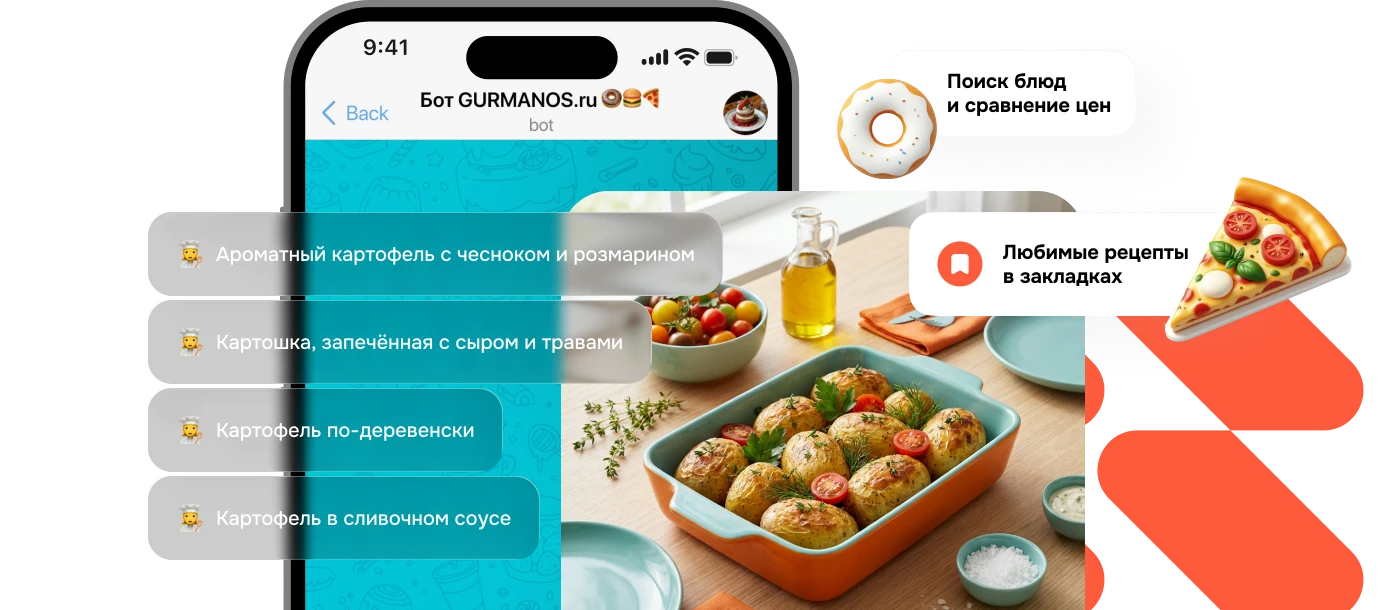 Просто напишите, что хотите — и бот найдёт идеальный рецепт. Он подбирает варианты с учётом ваших предпочтений, доступных ингредиентов и уровня сложности. Хотите что-то быстрое, праздничное или диетическое? Больше не нужно листать сотни страниц в поисках подходящего блюда — бот предложит лучшее. Готовить станет проще и быстрее.
